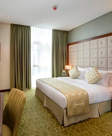 تُعدّ رويال كونتيننتال سويتس أفضل شقق فندقية تجمع بين الفخامة والراحة، مما يجعلها الخيار الأمثل للعائلات الباحثة عن شقق فندقية في دبي. يقع هذا السكن الفاخر بالقرب من دبي مول الشهير، ويُطلّ على مناظر خلابة لقناة دبي المائية الرائعة وبرج خليفة الأيقوني. بمجرد دخولك جناحك الفسيح، ستستقبلك أجواء دافئة تُشعّ بالأناقة والرقي.